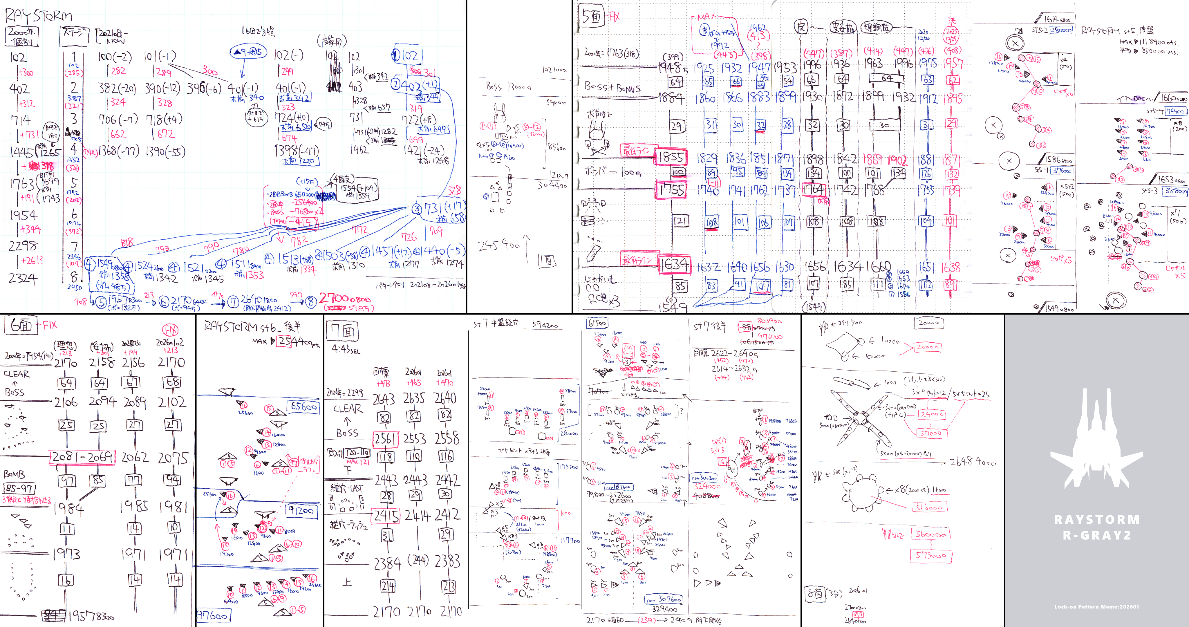 | RayForce ( 798万*1995年 / Youtube ) / RayStorm ( R-GRAY2:2324万*2000年 / 2026年自分用参照パターン / 2026年パターンメモ / 1997年 / 基板 ) / RayCrisis |